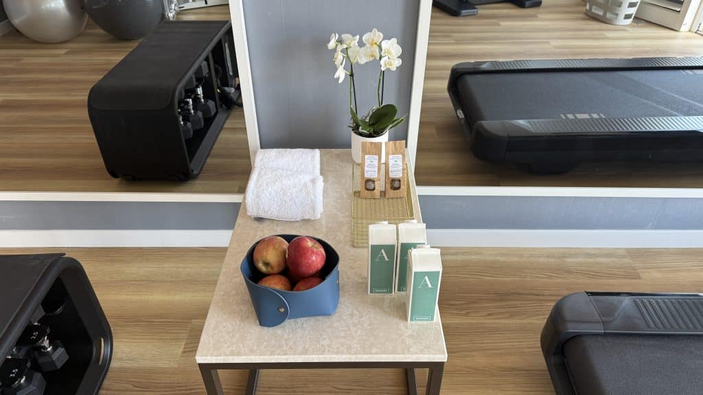 Charmant fand ich dagegen, dass man neben Äpfeln und Wasser auch kleine Protein-Bälle als Snack zur Verfügung gestellt hat. Weniger positiv aufgefallen ist mir, dass das Wasser und die Handtücher nicht immer nachgefüllt wurden.
