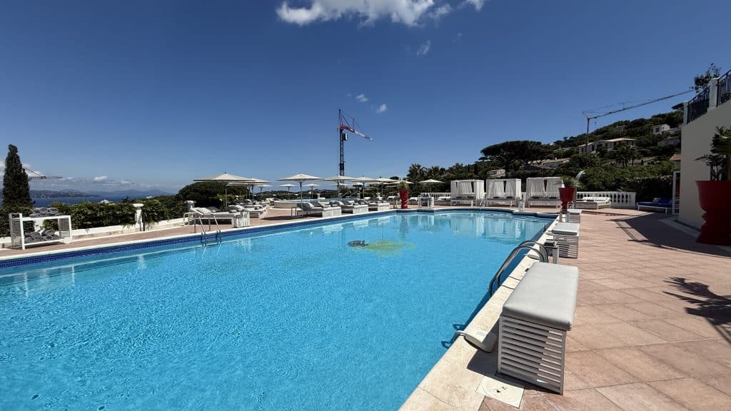 Wenngleich es sich bei der Villa Belrose um ein Boutique-Hotel handelt, darf man sich dennoch über ein schönes Erholungsangebot freuen. Das gilt insbesondere für die aus zwei großen Pools bestehende Poollandschaft mit Traumblick über die Bucht.