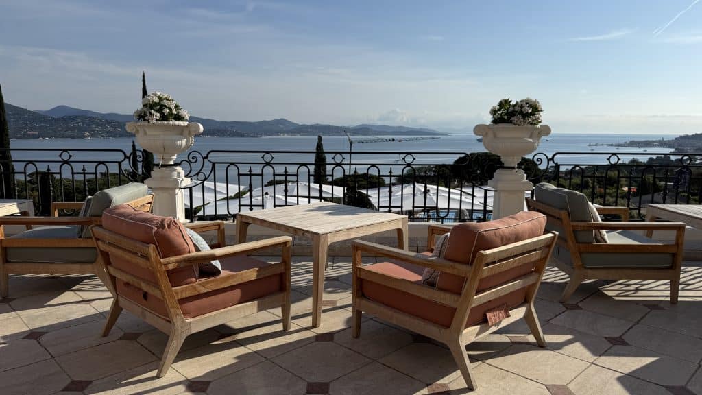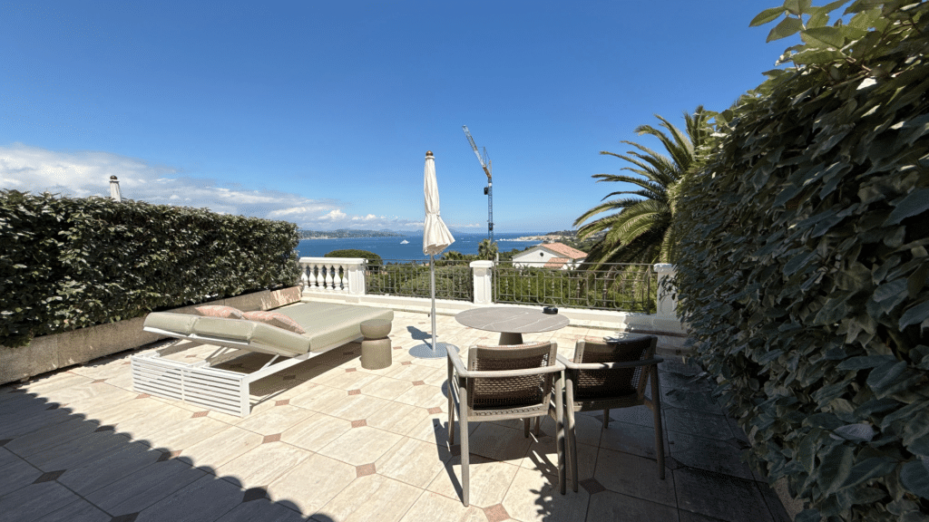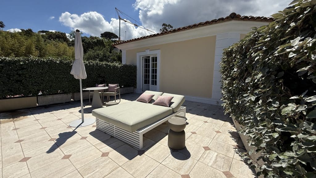 Ein weiteres Highlight im Rahmen meiner Althoff Villa Belrose Saint-Tropez Bewertung ist fraglos die Terrasse, die man durch eine Tür vom Zimmer aus betritt – so kommt dankbarer Weise auch viel Licht in den Raum.