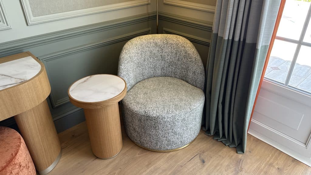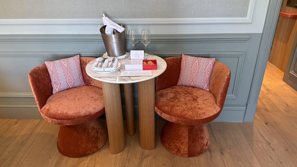Daneben findet man außerdem noch einen Sessel, sodass es neben dem Bett insgesamt vier Sitzgelegenheiten im Zimmer gibt, was bei dieser Größe nicht unbedingt selbstverständlich ist.