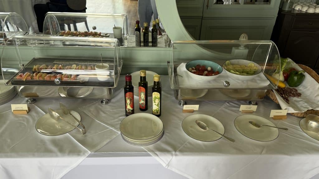 Davon ab findet man im Innenbereich ein umfangreiches Buffet, das für ein Hotel mit nur 40 Zimmern und Suiten absolut überzeugen kann. Besonders positiv hervorheben möchte ich die hervorragende Auswahl und ebenfalls hohe Qualität der verschiedenen Backwaren.
