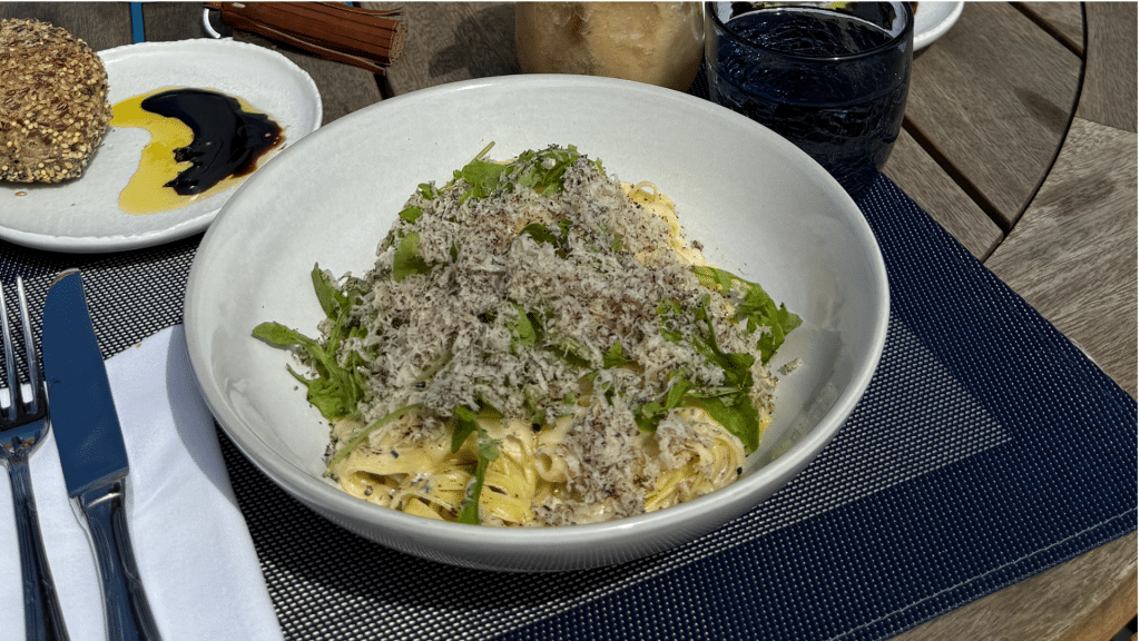 Wirklich außergewöhnlich gut waren derweil die Nudeln mit Trüffeln in einer cremigen Sauce, die für diese Qualität ebenfalls einen angemessenen Preis hatten (zumindest für die Verhältnisse von Saint-Tropez).