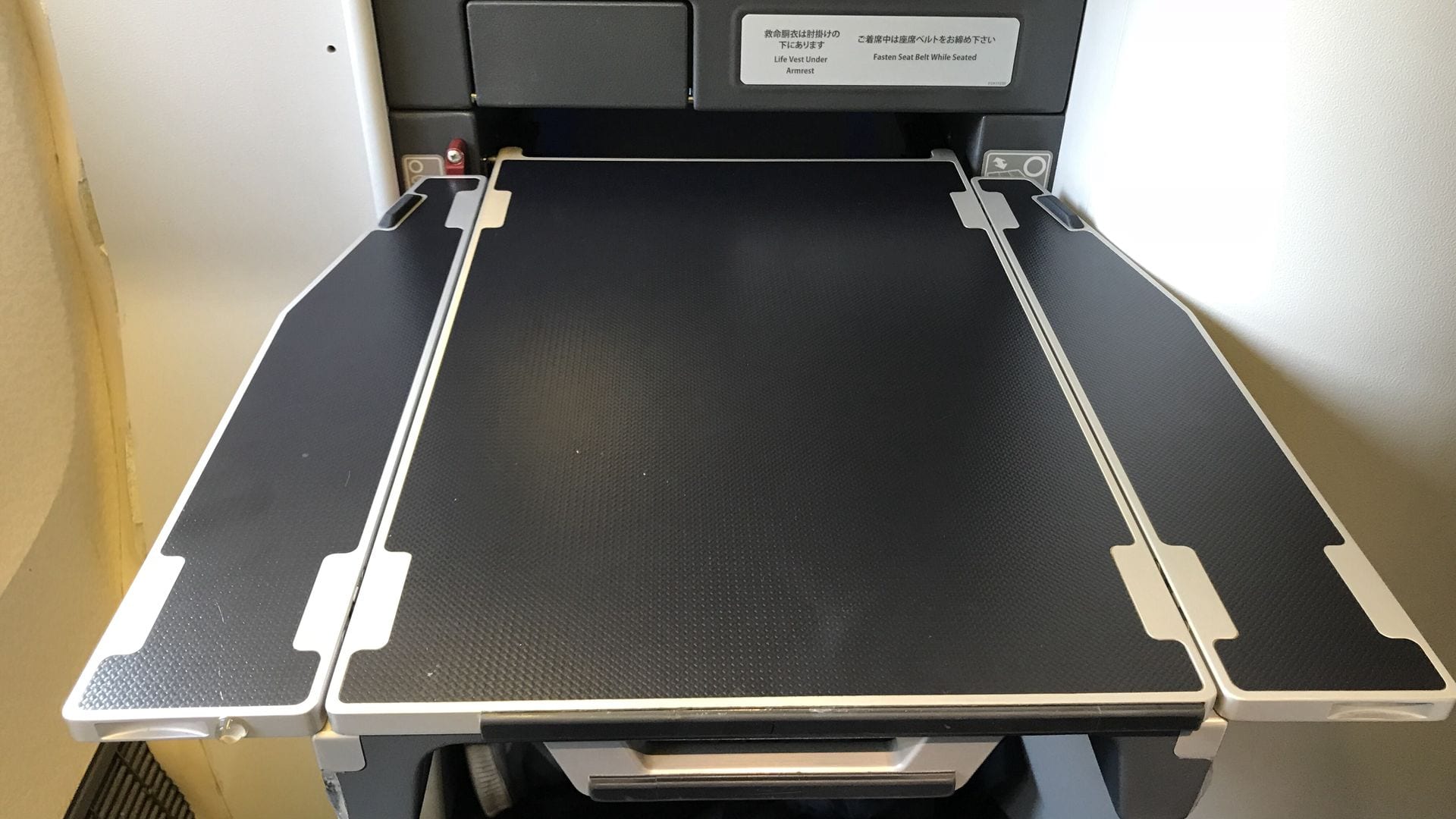Der vorhandene Stauraum am Sitz gefiel mir gut, es gibt genügend Ablageflächen und Stauplatz. Auch die Fußablage ist im Normalfall groß genug, obwohl es beim Schlafen etwas eng werden kann. Im Sitz verbaut sind der Stromanschluss, USB-Anschluss sowie die Fernbedienung für das Unterhaltungssystem und die Sitzkontrollschalter.