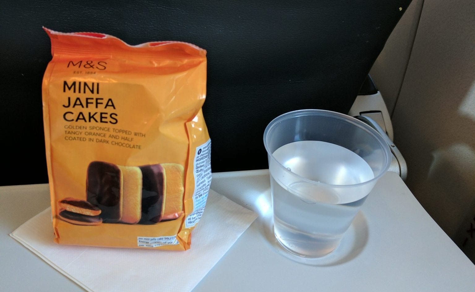 Für GBP 1,40 erhält man bei British Airways beispielsweise die Mini Jaffa Cakes. Auch die Bezahlung mit Kreditkarte ist dabei im Gegensatz zu Eurowings absolut problemlos möglich. BA macht hier wirklich vieles richtig und punktet mit einer großen Auswahl und guter Qualität. Auch angesichts der nicht wirklich ansprechenden Verpflegung in der British Airways Business Class bin ich mit dem Angebot in der Economy eigentlich ganz zufrieden.