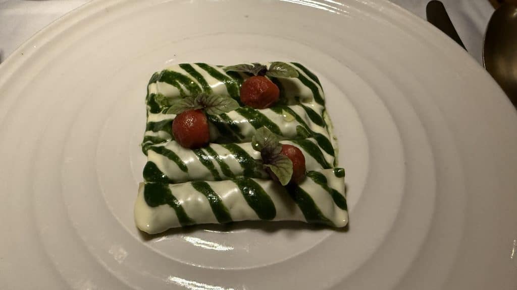 Leider sollte es von hier merklich bergab gehen, denn während die Pasta von seiner Begleitung durchaus gut war, konnten die Cannelloni, leider nicht überzeugen. Neben der auffällig kleinen Portionsgröße war das Gericht allen voran gänzlich kalt – nicht lauwarm, sondern einfach kalt. Nach der Reklamation wurde erst einmal darauf hingewiesen, dass das Gericht generell nicht warm serviert werde, worauf aber auch nicht hingewiesen wurde. Zehn Minuten später kam es dann dennoch zumindest lauwarm wieder (frisch zubereitet) aus der Küche.