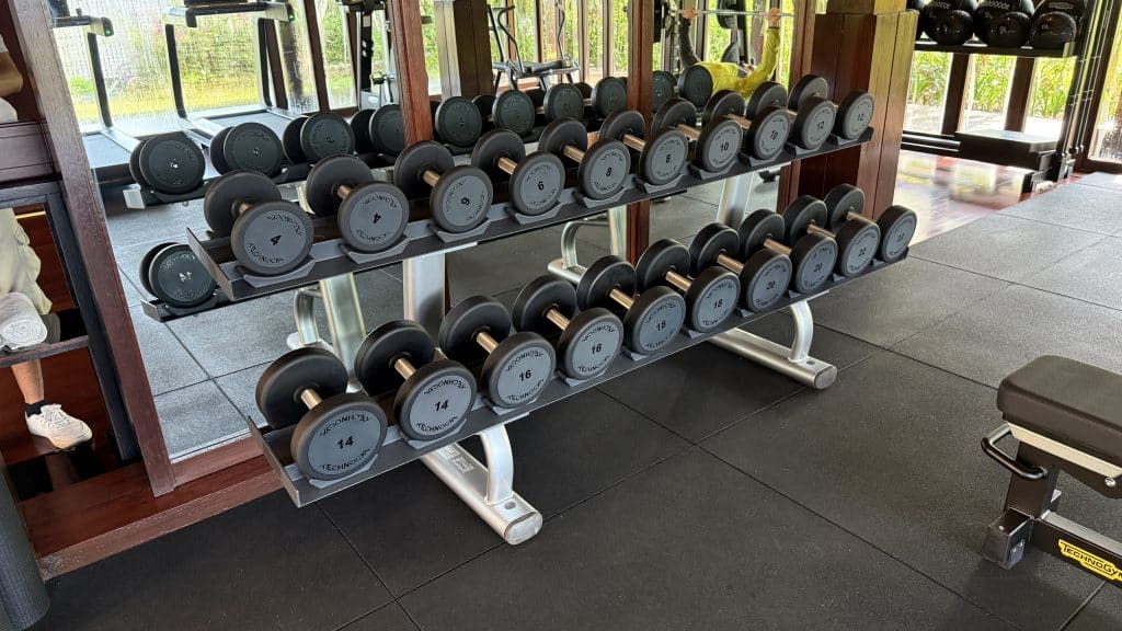 Das Fitnessstudio befindet sich in einem hervorragend klimatisierten Pavillon auf dem Gelände des Resorts.
