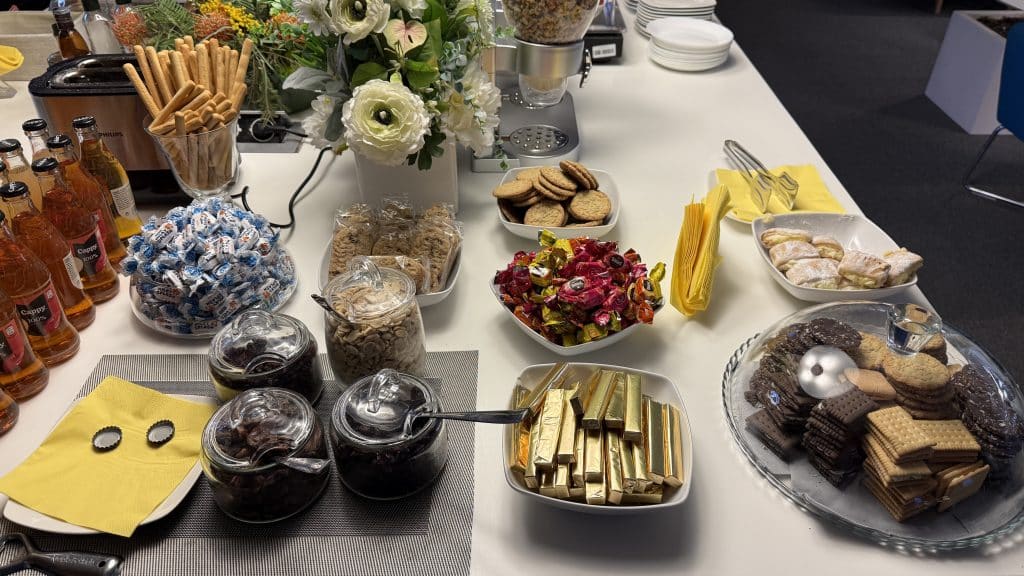 Natürlich habe ich bei meinem Business Executive Lounge Posen Test trotz der frühen Morgenstunde auch einen Blick auf das Buffet geworfen, das in etwa in der Mitte der Lounge zu finden ist.