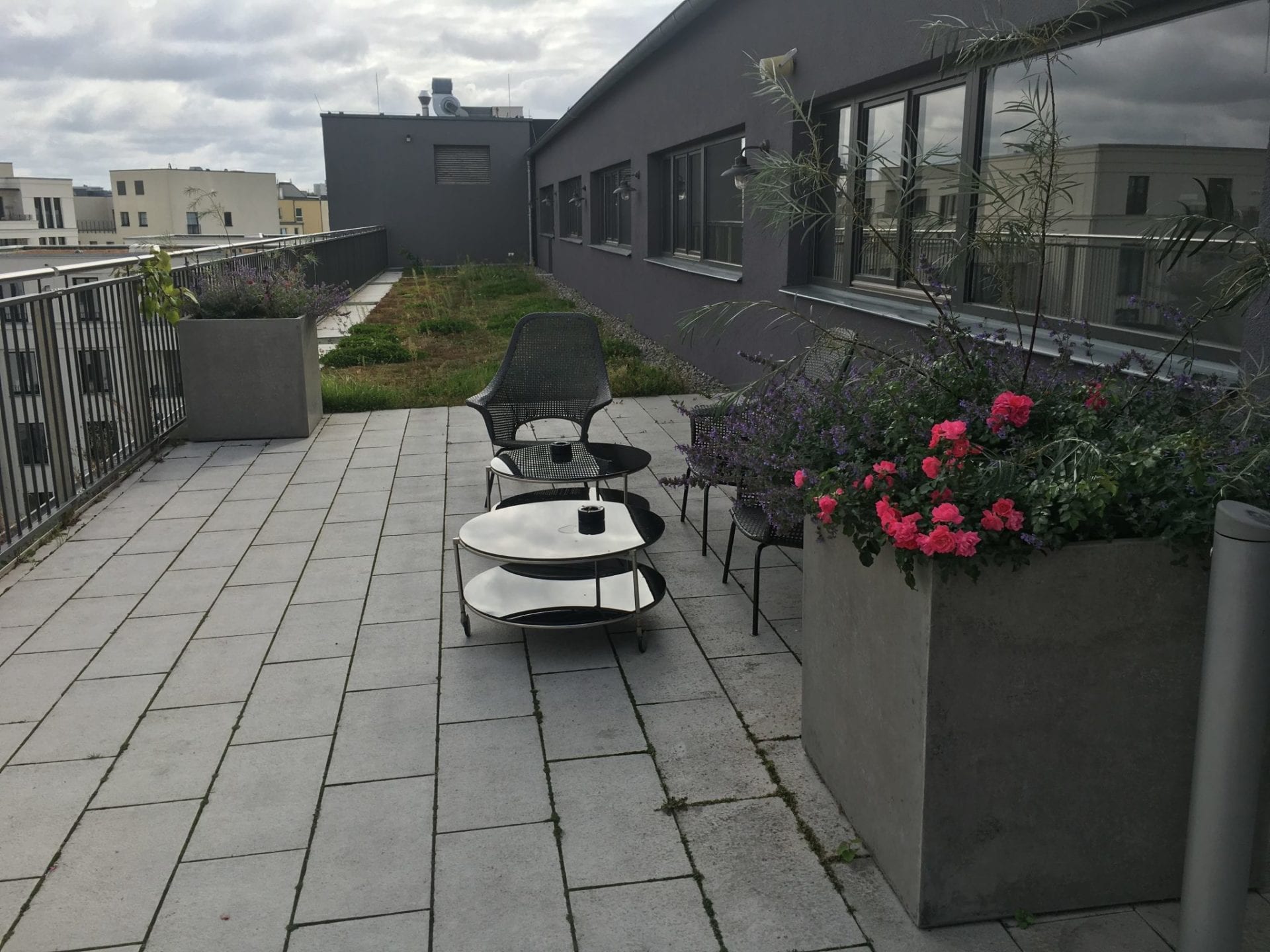 Sehr nett ist die gegenüber der Club Lounge gelegene Dachterrasse, die zwar keinen allzu spektakulären Ausblick bietet, aber trotzdem bei Sonnenschein ein nettes Angebot ist. Diese können allerdings alle Gäste nutzen.