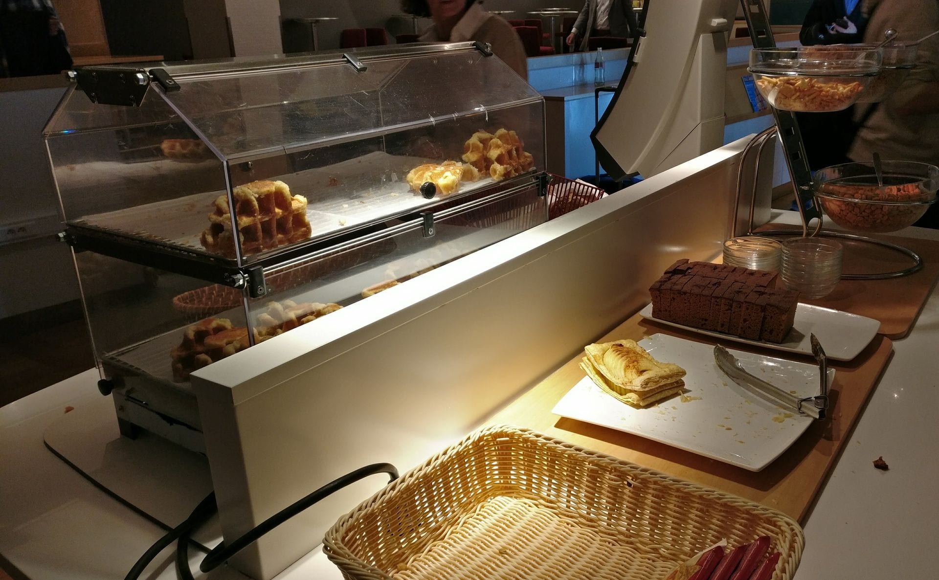 Der Fokus am Buffet der Diamond Lounge Brüssel liegt klar auf Süßem: So findet Ihr neben einigen Desserts auch die typisch belgischen Waffeln, die auch recht gut schmecken.