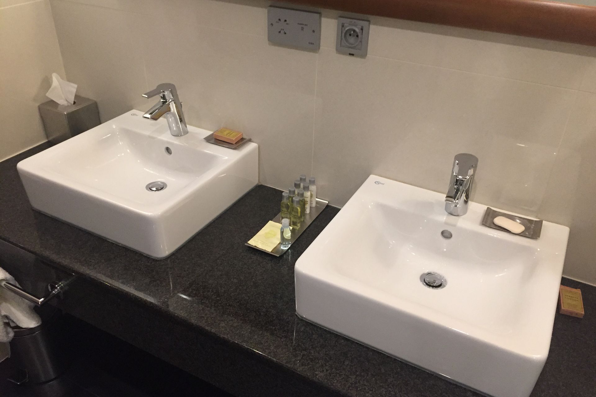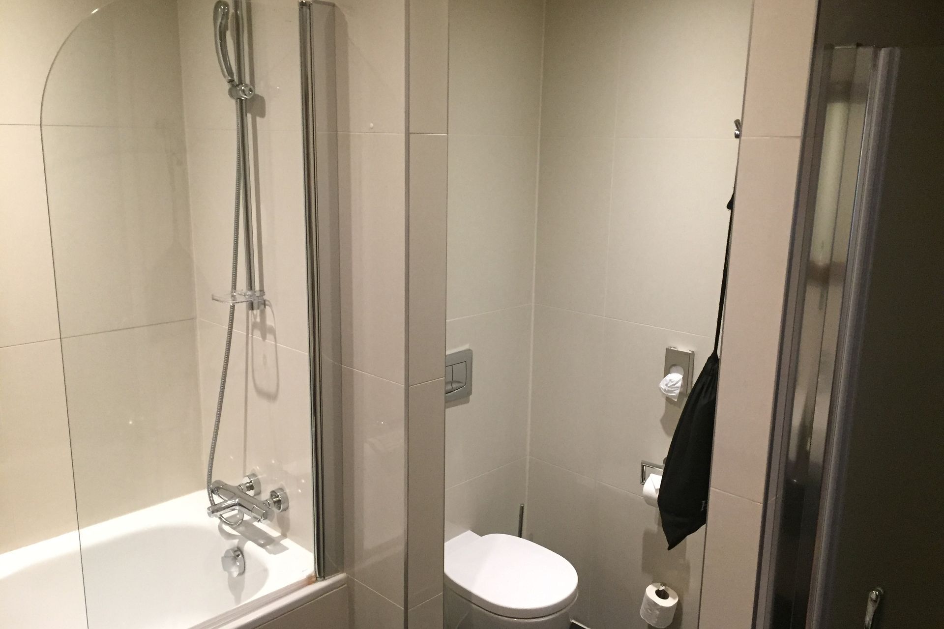 Mein durchwachsener Eindruck hat sich im Bad fortgesetzt. Positiv ist die Größe und Ausstattung. Es gibt zwei Waschbecken, eine räumlich getrennte Toilette, eine Badewanne und noch eine Regendusche. Auch hier war nicht alles einwandfrei, denn der Wasserdruck der Dusche ließ zu wünschen übrig.