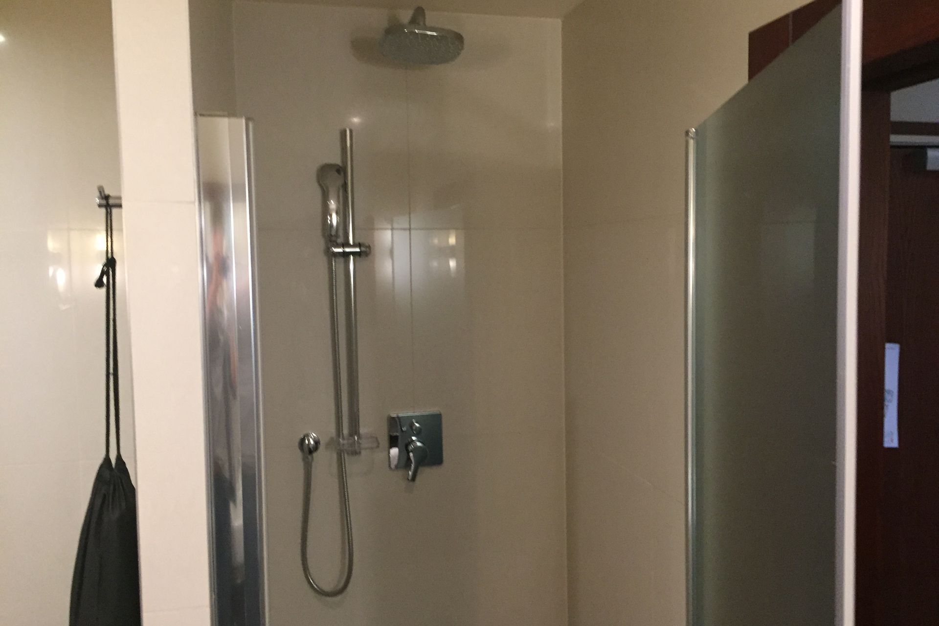 Ein letzter Kritikpunkt ist die Klimaanlage, die zusätzlich über einen Bewegungssensor im Eingang gesteuert wird. Jedes Mal, wenn man das Zimmer betritt, schaltet sich der Ventilator der Klimaanlage ein und meine präferierten Einstellungen gehen verloren. Auf Nachfrage kam zwar ein Techniker, doch dieser konnte das Problem nicht beheben. Insgesamt war ich trotz einiger Kritikpunkte mit dem Zimmer zufrieden, wenngleich neuere Hotels wie das DoubleTree Breslau oder DoubleTree Krakau mehr überzeugen.