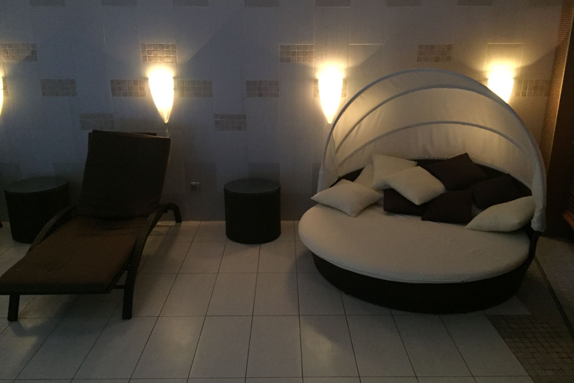 Das DoubleTree Bratislava verfügt über einen großen Pool, in dem es sich vernünftig schwimmen lässt. Gut gefallen hat mir die abendliche Beleuchtung, die eine angenehme Atmosphäre schafft. Es gibt sogar eine Sonneninsel, einige Liegen und einen lichtdurchfluteten Ruheraum. Der Pool ist direkt an eine Terrasse angeschlossen, auf der allerdings nur eine Doppelliege steht.