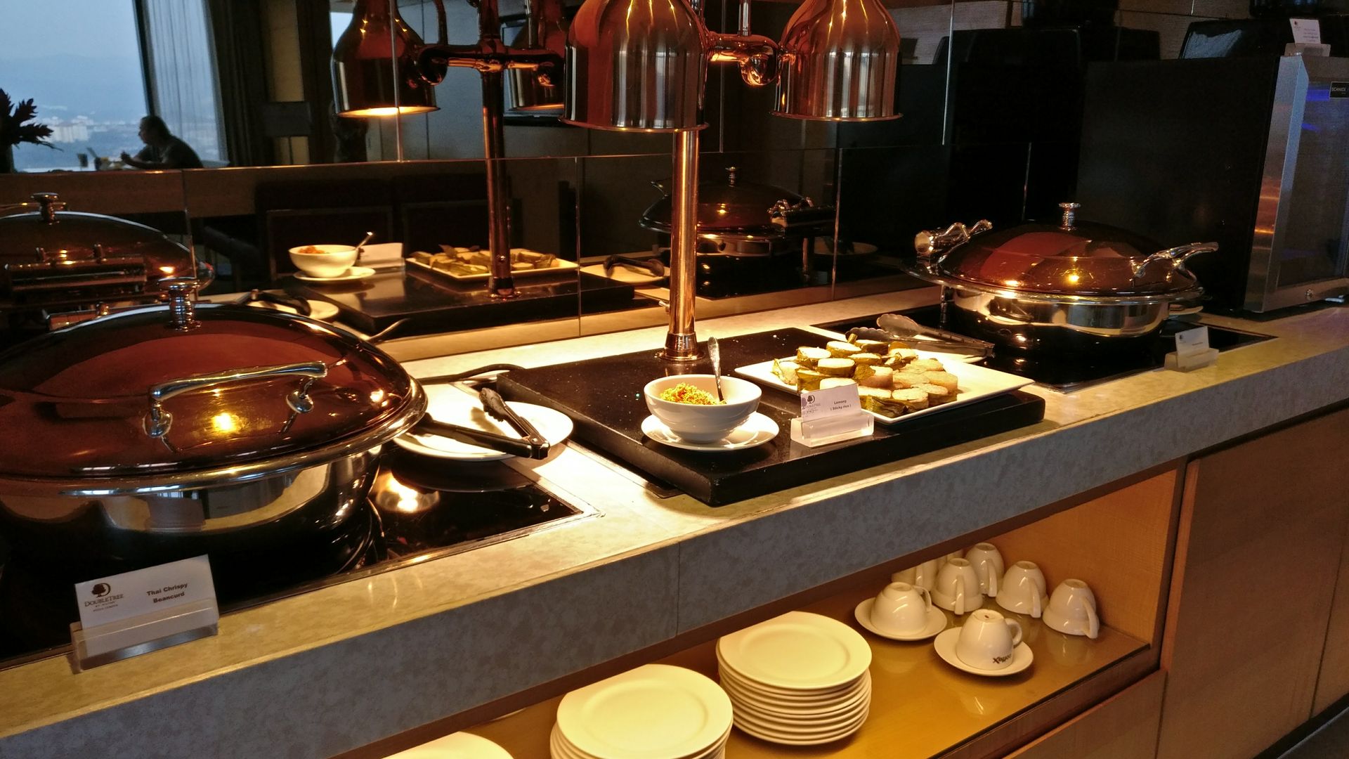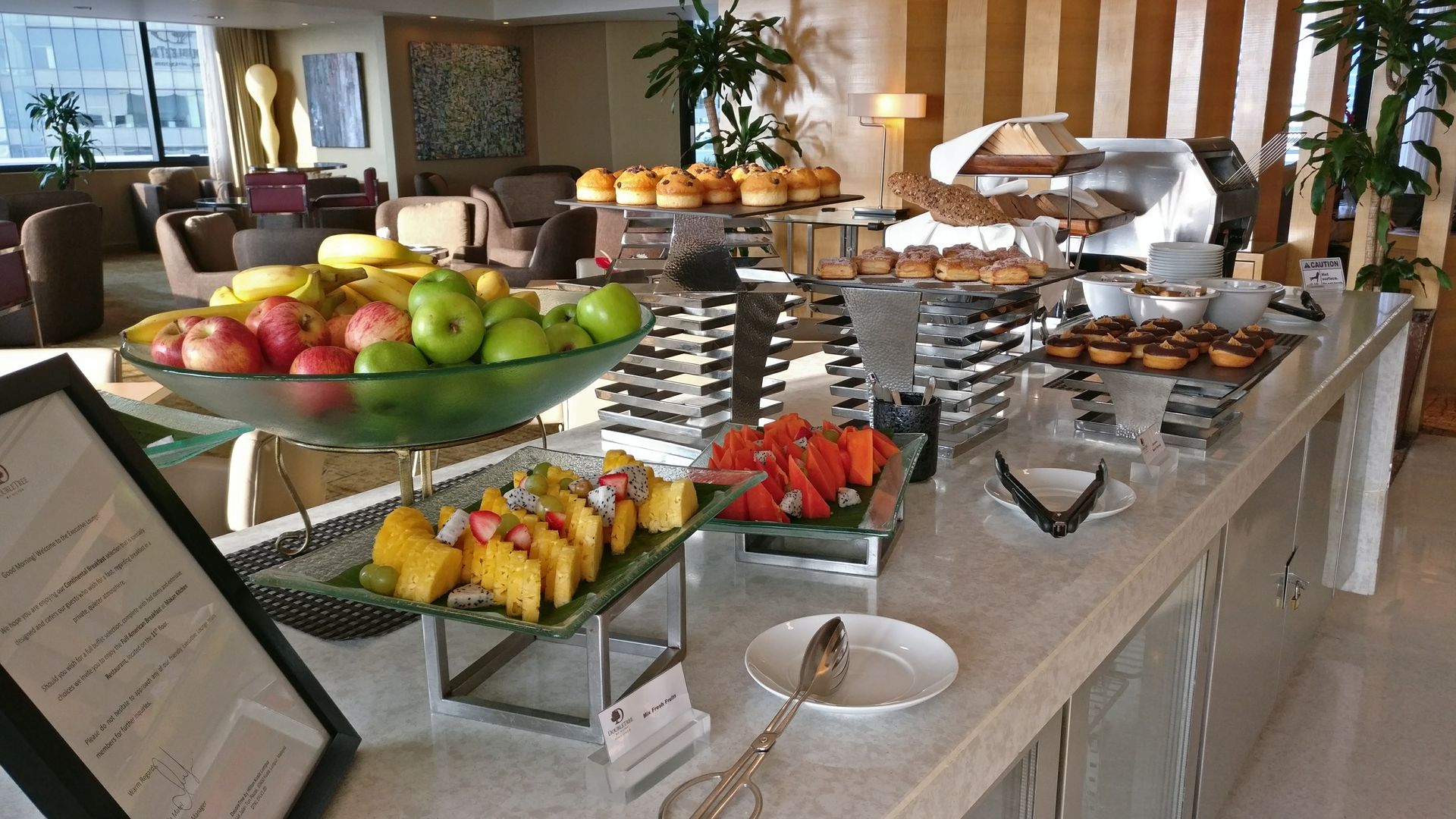 Die Executive Lounge im DoubleTree befindet sich im 34. Stock und bietet einen hervorragenden Blick auf die Skyline von Kuala Lumpur. Die Lounge besteht aus einem großen Raum direkt hinter der Rezeption, daneben sind einige Tresen für das Frühstück bzw. Snacks am Nachmittag und Abendessen.