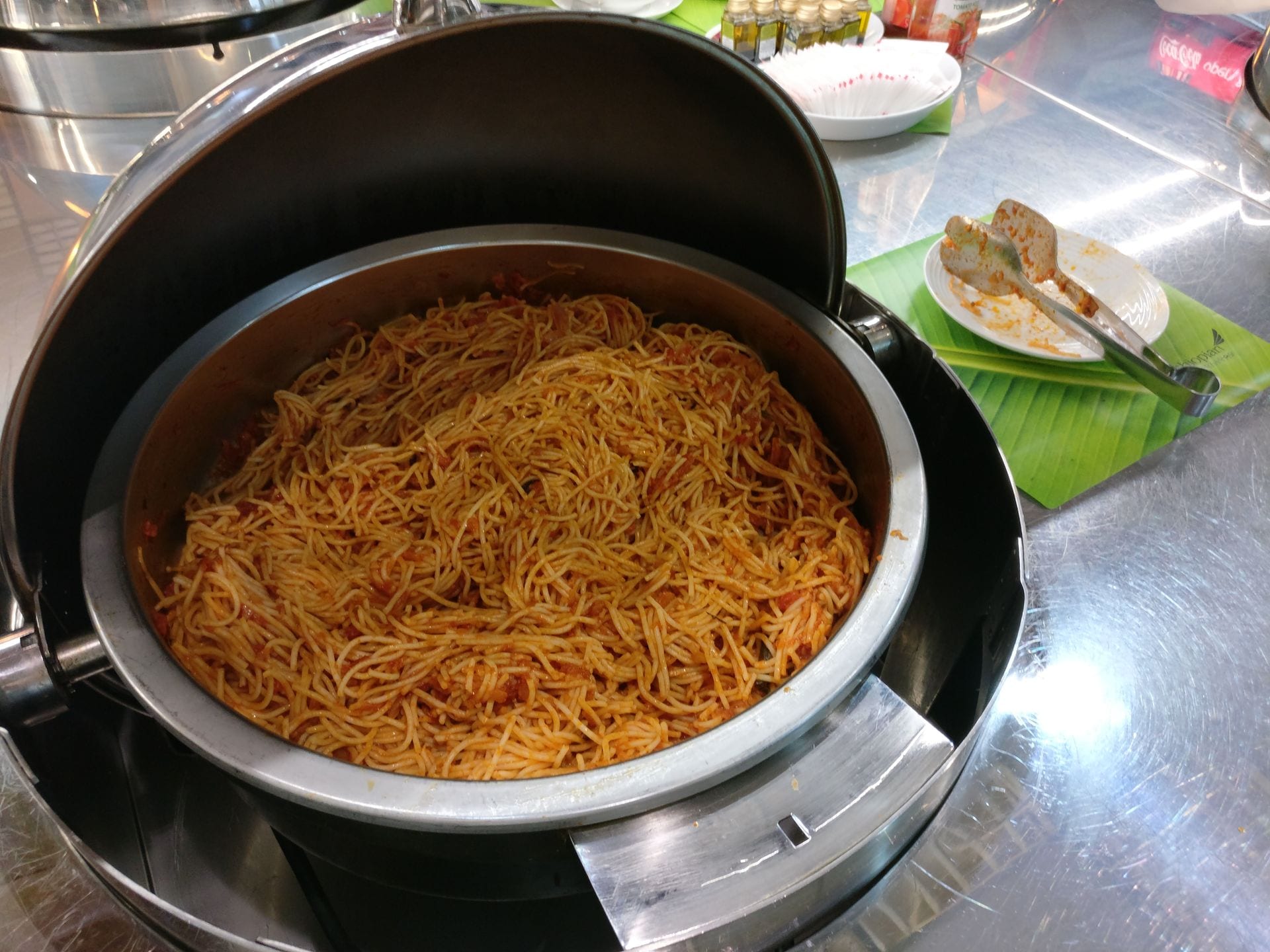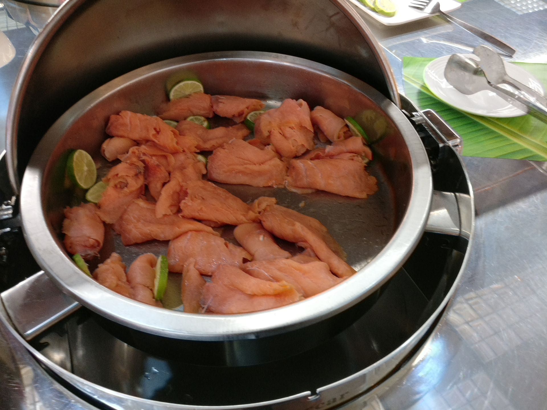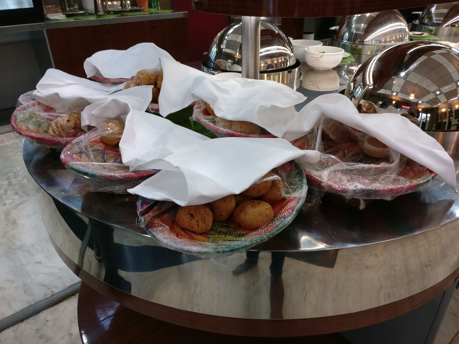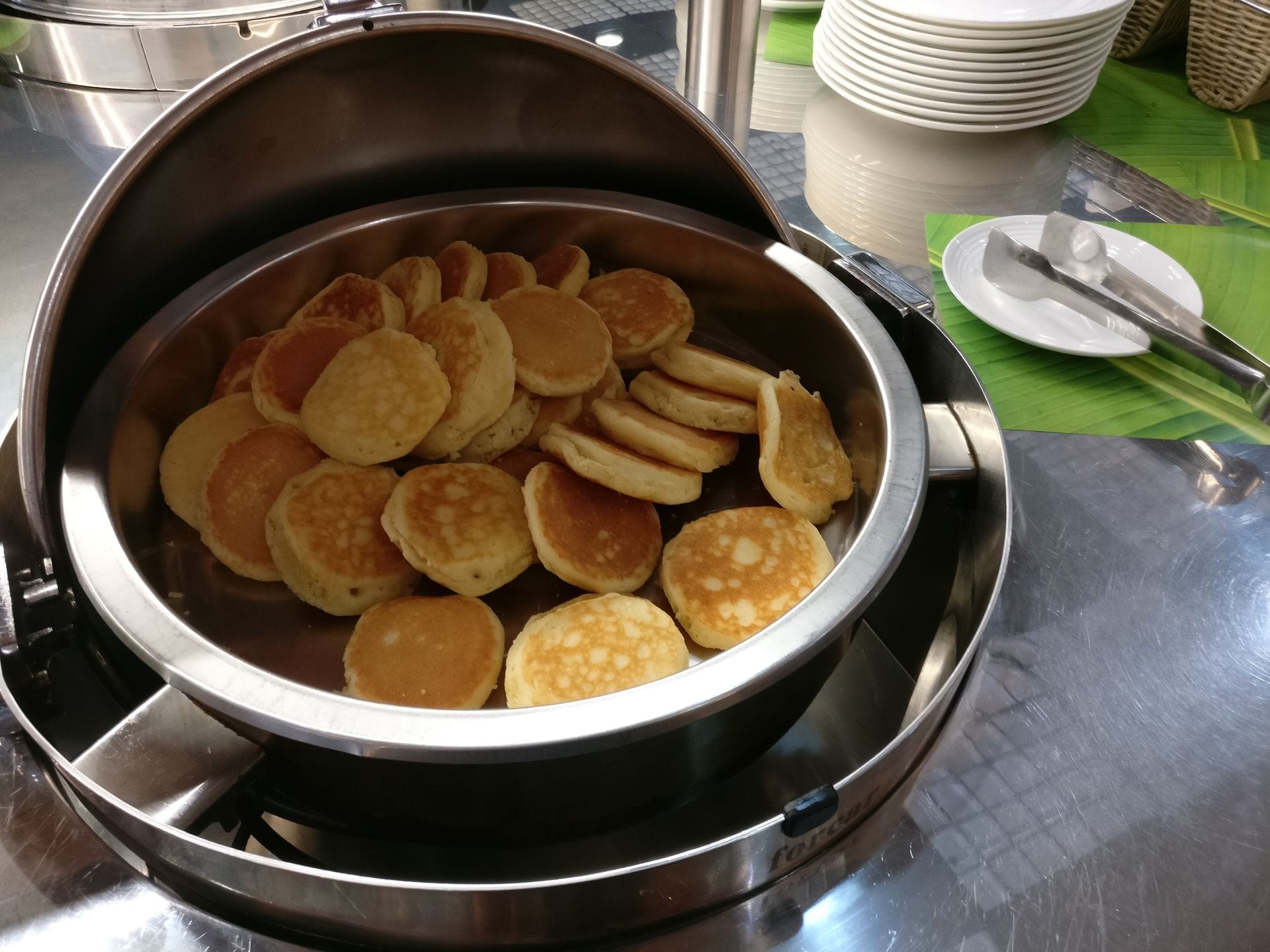 Die in verschiedenen Warmhaltebehältern angerichteten Speisen überzeugen da schon eher. Die westlichen Optionen wie Lachs (ebenfalls im Warmhaltebehälter) oder Pancakes waren geschmacklich nicht sonderlich überzeugend, dasselbe galt für asiatische Nudeln.