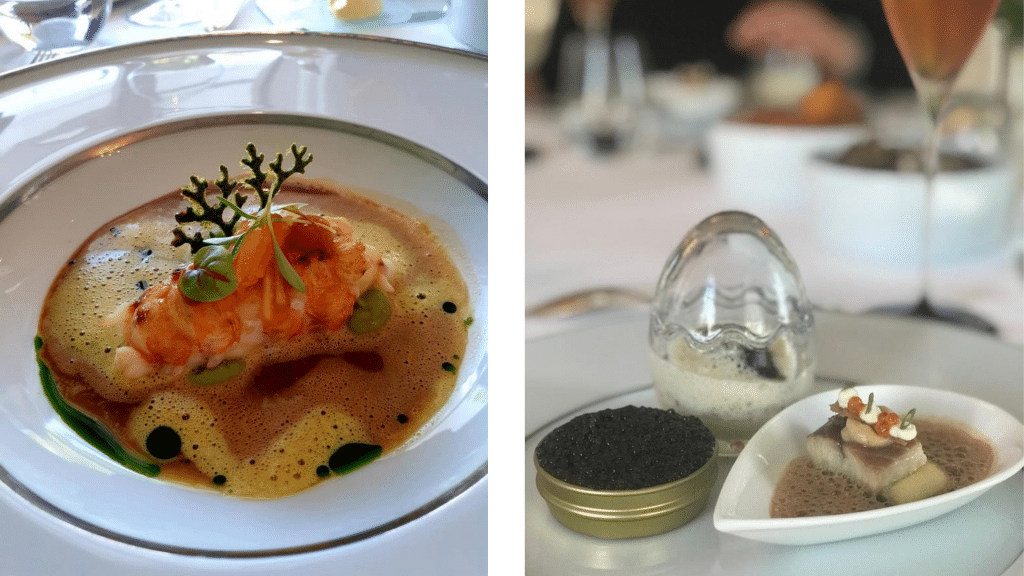 Wir durften uns über die Kaviar-Trilogie freuen, die definitiv zu einem der Highlights auf der Speisekarte gehört und auf verschiedene Fisch-Kreationen, wie dem dänischen Kaisergranat.