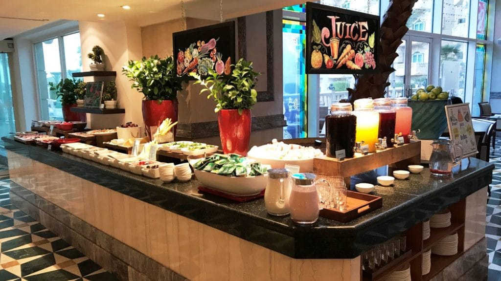 Das sehr reichhaltige Frühstück kann wahlweise auch im Buffet-Restaurant Mokha Café eingenommen werden. Die am Abend angebotenen warmen und kalten Hors Doeuvres sind unglaublich vielfältig, abwechslungsreich und überaus lecker.