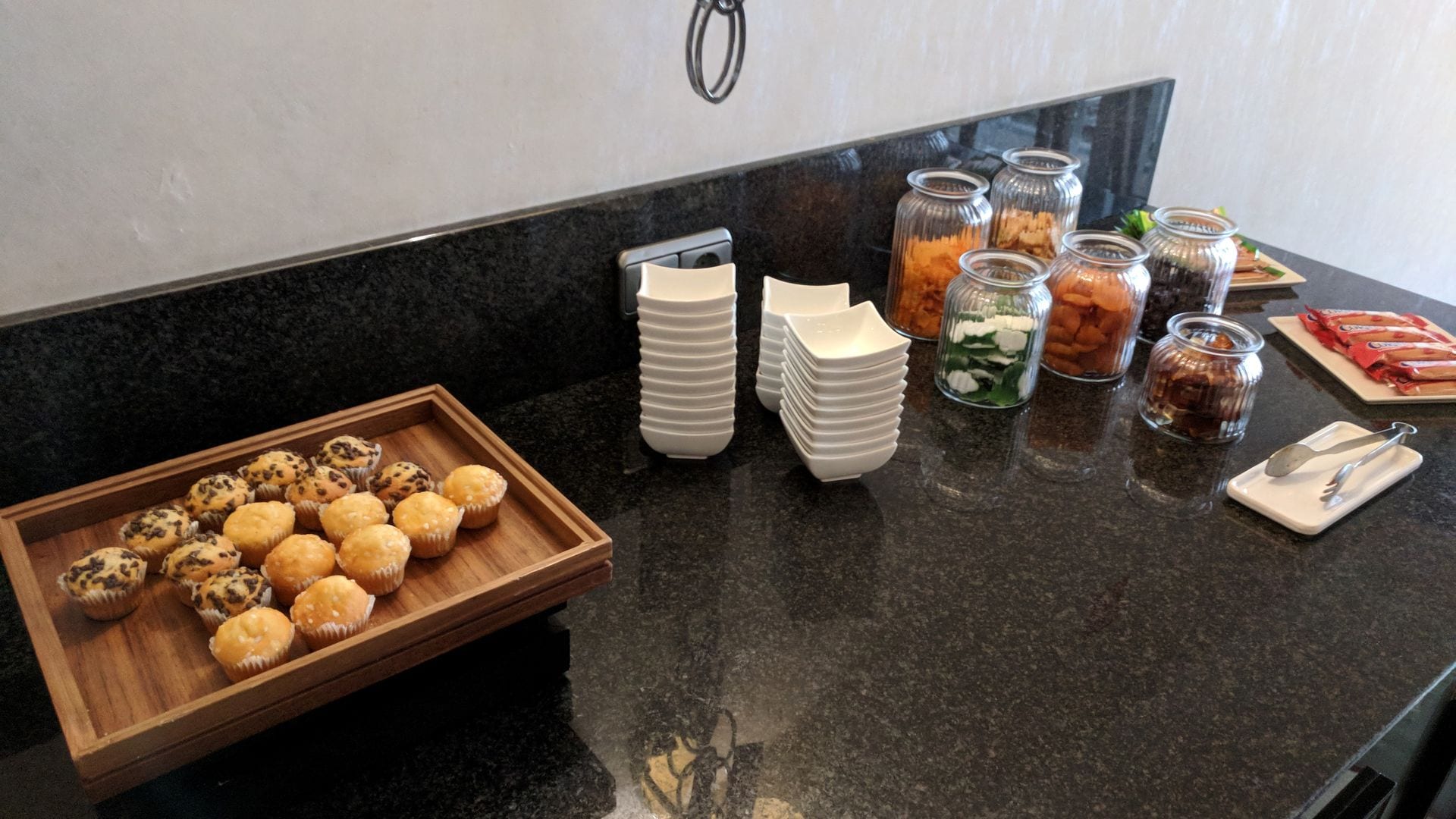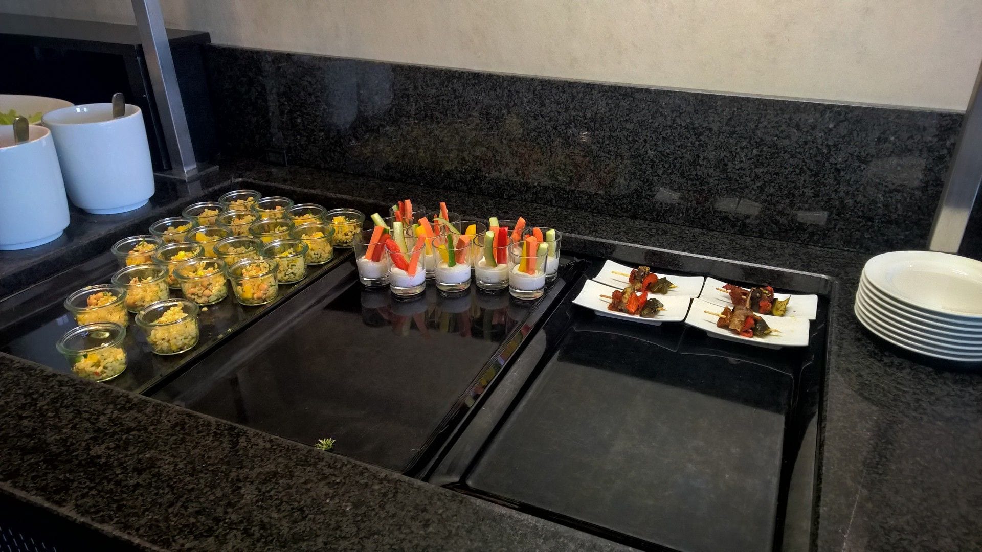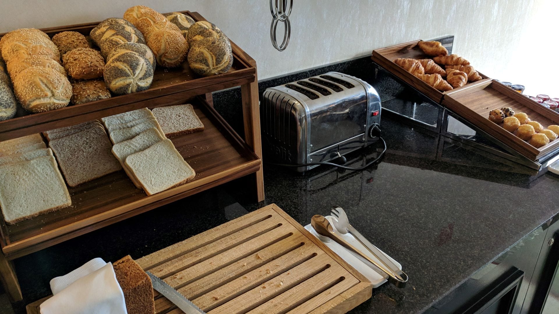 Neben einem kleinen Frühstücksbüffet bietet man auch eine Kleinigkeit am Nachmittag sowie eine Cocktail Hour am Abend mit einer kleinen Speiseauswahl.