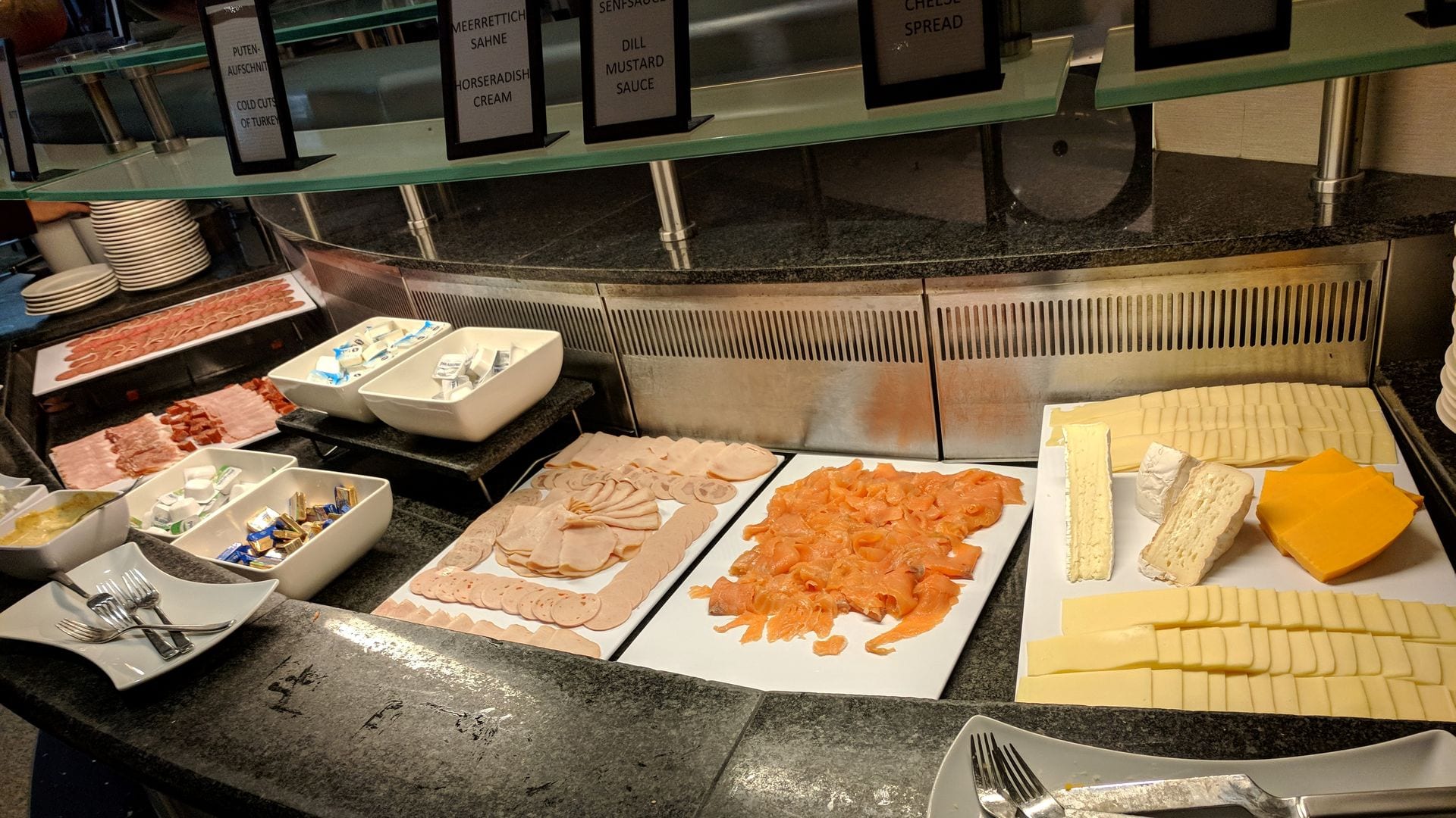 Auch das reguläre Frühstück im Restaurant des Hilton München Park konnte ich testen. Davon war ich aber eher weniger angetan. Schon die schiere Masse an Gästen lies kein entspanntes Frühstück zu, die zahllosen Sitzgelegenheiten waren über einige Räume verteilt. Die Auswahl ist hier zwar deutlich größer, dafür muss man längere Wartezeiten und muss teilweise Menschenmassen im Buffetbereich in Kauf nehmen. Die Omelett-Station hatte um 10:30 Uhr am Wochenende bereits geschlossen (das Frühstück geht offiziell bis 11 Uhr) und aufgefüllt am Buffet wurde auch nur noch spärlich.