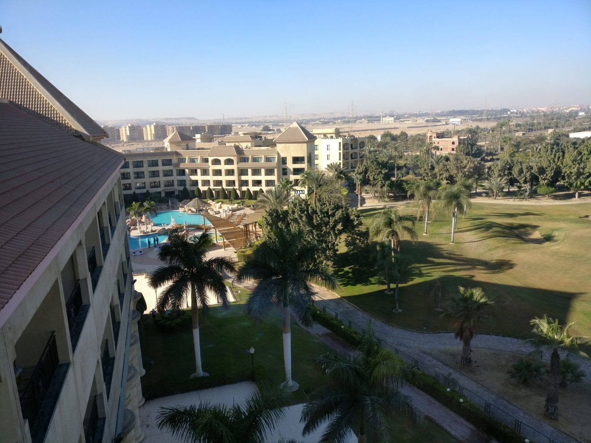 Der Name Hilton Pyramids Golf Resort klingt im Prinzip wie der Name eines Hotels, das direkt neben den Pyramiden liegt. Vielmehr ist das Golfhotel aber in Dreamland, etwa 30 Minuten Fahrzeit von den Pyramiden entfernt. Auch von den Zimmern sieht man die Pyramiden nicht, weswegen der Namen eigentlich absoluter Quatsch ist. Auch Dreamland, eine Ansammlung von Hotels, ist nicht besonders hervorzuheben. Immerhin: Man befindet sich zumindest auf einer Seite in einer Grünfläche.