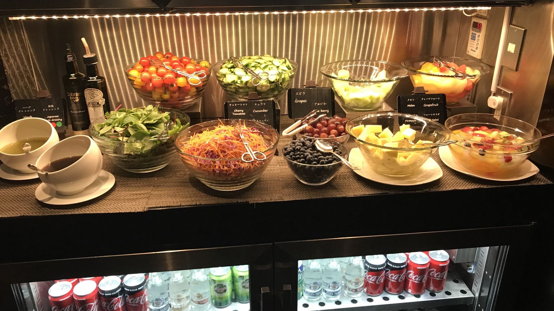 Im Gegensatz zum Zimmer konnte mich die Executive Lounge im Hilton Tokyo so richtig überzeugen. Mit einem genialen Ausblick ist die Lounge in mehrere kleinere Bereiche aufgeteilt, die allesamt sehr schick eingerichtet sind. Die Auswahl an Snacks und Getränken ist so wie man sie von einem Hilton kennt. Kleine Kuchen und Nüsse sowie eine gute Auswahl an Softdrinks, Säften und Kaffe sind vorhanden. Leider konnte ich die “Happy Hour” am Abend nicht testen, da ich erst spät angekommen bin.