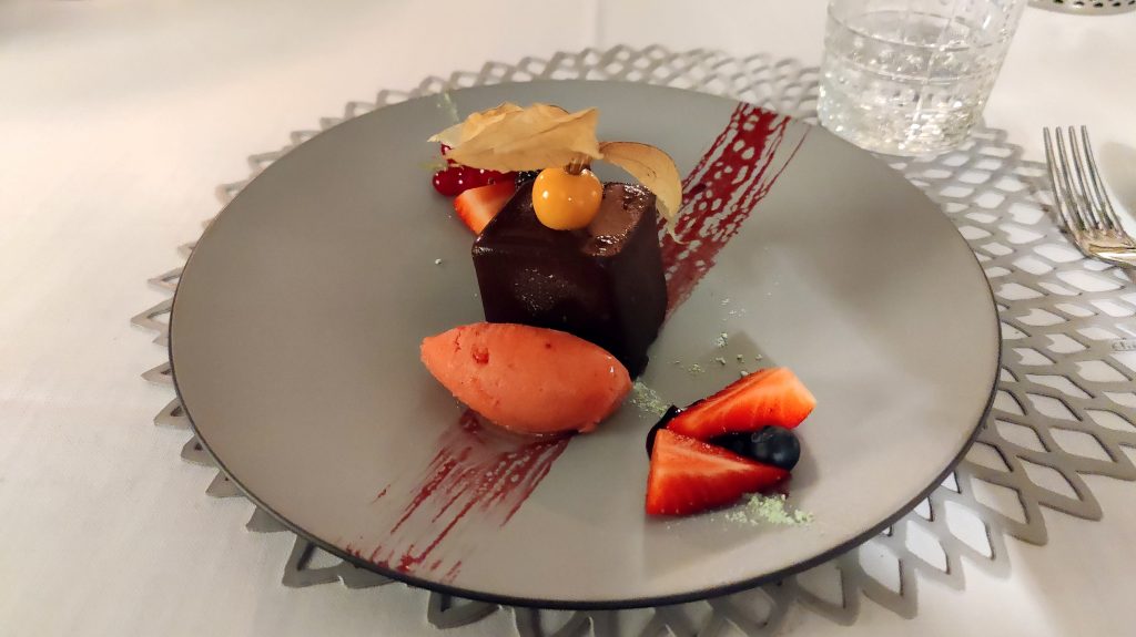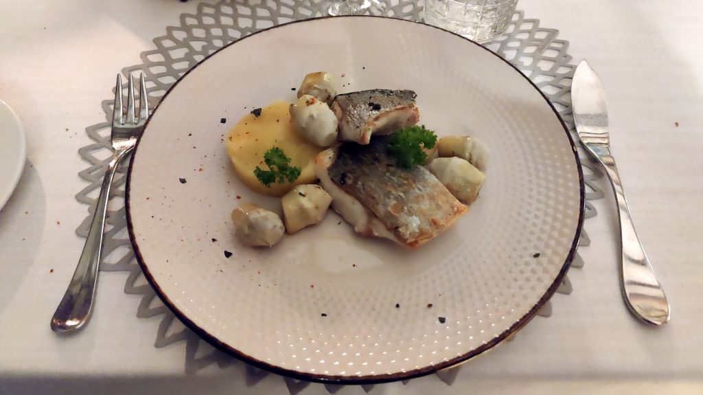 Um beim Abendessen draußen zu sitzen, war es dagegen bei meinem Aufenthalt leider noch zu kalt, sodass ich drinnen – ebenfalls mit Meerblick – das Dinner genießen konnte. Serviert werden im Rahmen der Halbpension drei Gänge von einem wechselnden Menü.