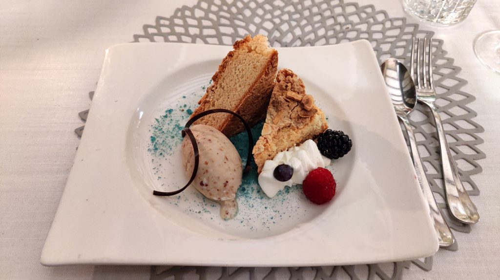 Keinerlei Grund zur Kritik hatte ich auch beim Dessert, etwa den mallorquinischen Mandelkuchen.