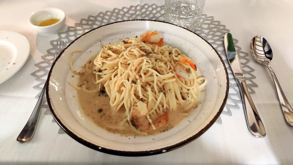Probiert habe ich während meines Aufenthalts ein paar verschiedene Gerichte, von denen die Nudeln mit Meeresfrüchten definitiv das langweiligste war.