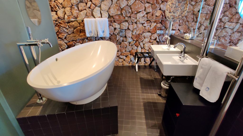 Meinen Gesamteindruck des Zimmers in dieser Hospes Maricel Mallorca Bewertung würde ich als durchschnittlich bis gut bezeichnen. Das Design ist an sich sehr schick und die besondere Gestaltung hat es mir durchaus angetan. Allerdings stören mich auch einige Aspekte, etwa das Fehlen eines vernünftigen Arbeitsplatzes oder auch der Straßenlärm. Beim nächsten Mal würde ich vermutlich doch eher ein Zimmer im Haupthaus mit Meerblick bevorzugen – auch wenn man hier auf einen Balkon verzichten muss.