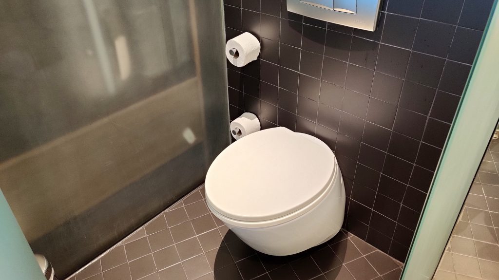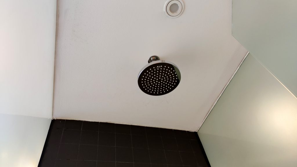 Ebenfalls positiv aufgefallen ist mir die abgetrennte Dusche, die durch eine kleine Scheibe auch einen Ausblick bietet. Der Regenduschkopf ist ebenfalls angenehm.