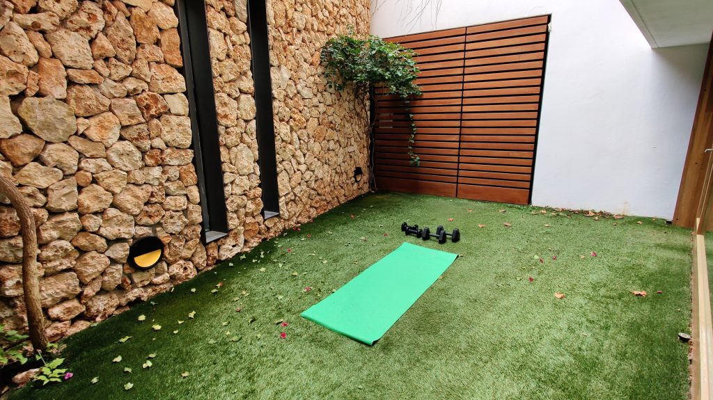 Einzig positiver Aspekt ist der “Mini-Garten” vor dem Fitnessraum, sodass man draußen trainieren kann.