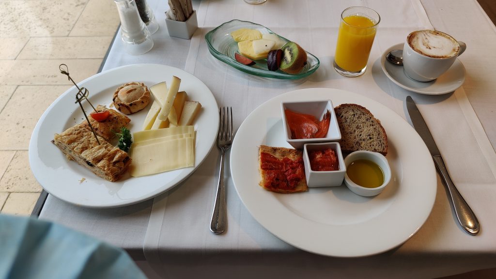 Das Frühstück im Hospes Maricel Mallorca hat sich durch das Coronavirus und die entsprechenden Maßnahmen sicherlich ein wenig verändert. Zum Zeitpunkt meines Besuches gab es ein kleines, bedientes Buffet.