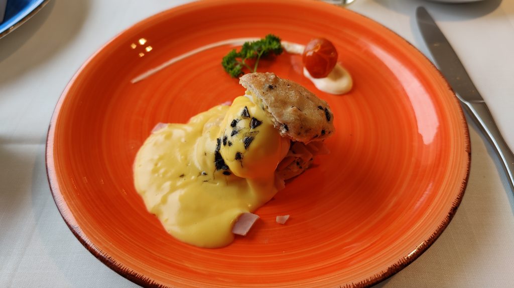 Aus einer Karte kann man zudem verschiedene warme Gerichte direkt aus der Küche bestellen, darunter die üblichen Ei-Klassiker.
