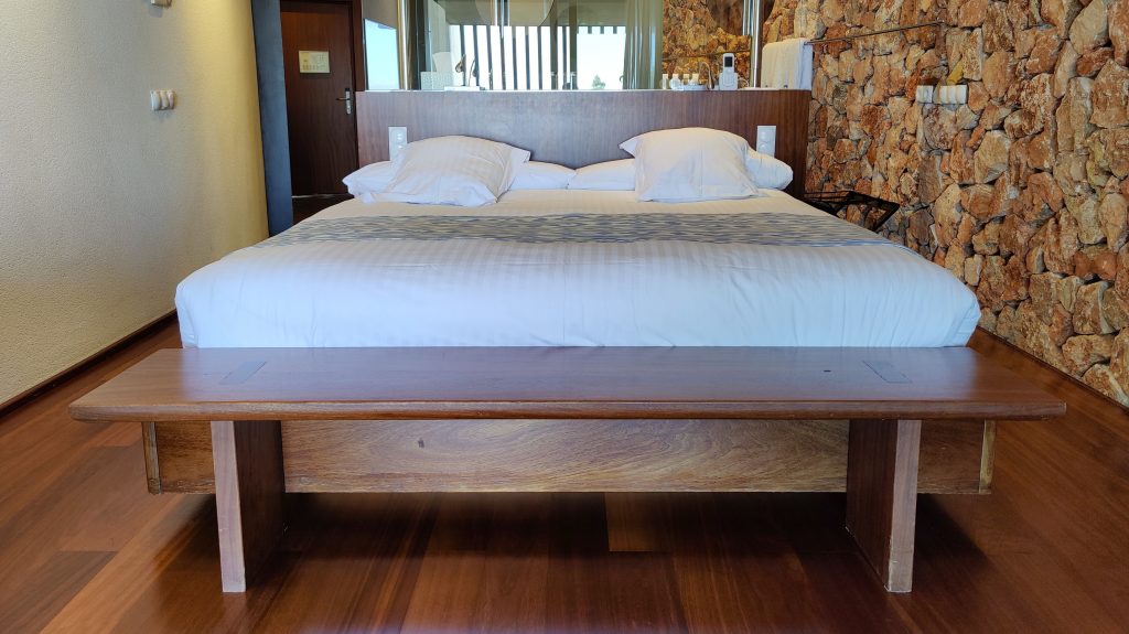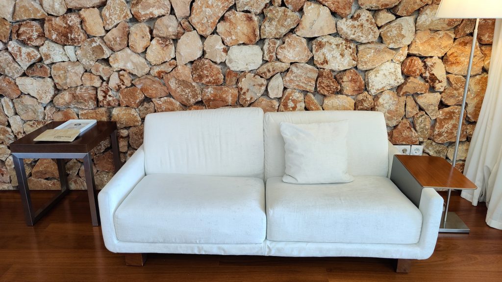 Ansonsten ist mir besonders die offene Steinwand auf der einen Seite des Zimmers aufgefallen – diese gibt dem Raum einen besonderen Charme.