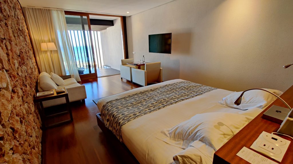 Gebucht habe ich für meinen Aufenthalt im April ein sogenanntes Natura Deluxe Zimmer für knapp 220 Euro pro Nacht (je nach Saison liegen die Preise für diese Kategorie meist zwischen 200 und 600 Euro) – die drittniedrigste Kategorie. Bedenken solltet Ihr bei der Zimmerwahl, dass die Zimmer mit der Bezeichnung ‘Natura’ im Neubau des Hotels liegen, der nicht direkt am Wasser ist, aber dennoch teilweise Meerblick bietet (Deluxe), dafür ist hier das Design deutlich moderner als im Altbau und Ihr profitiert von einem eigenen Mini-Pool auf dem Balkon.