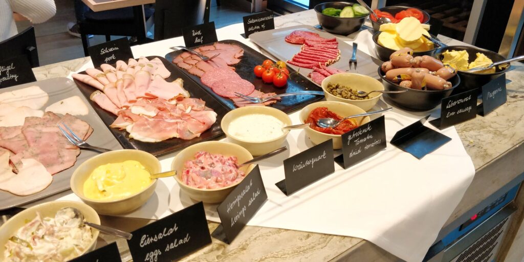 Einen positiven Eindruck hat bei mir das Frühstück im Hotel Indigo Berlin Alexanderplatz hinterlassen. Dieses habe ich für einen Preis von 15 Euro zusätzlich bei der Buchung hinzugefügt und erfreute mich so morgens eines mittelgroßen Buffets.