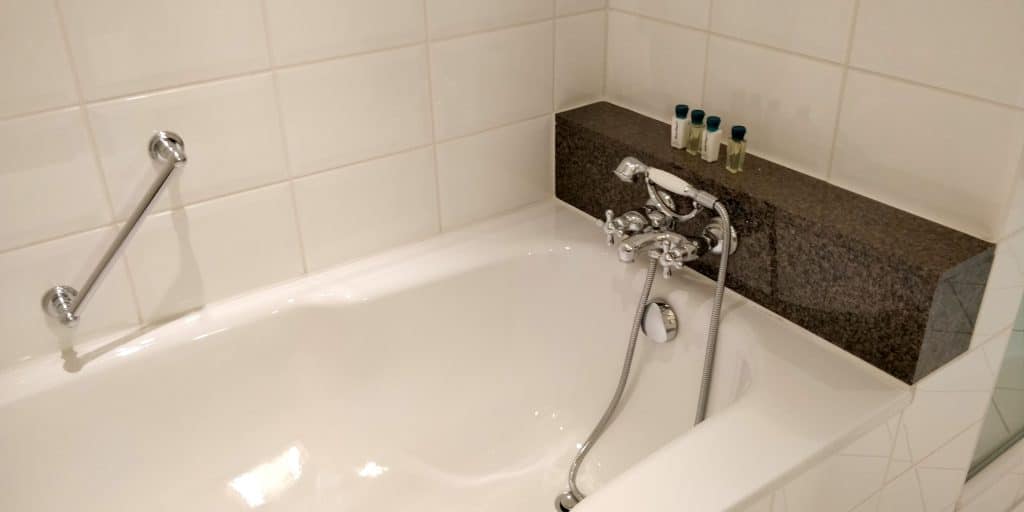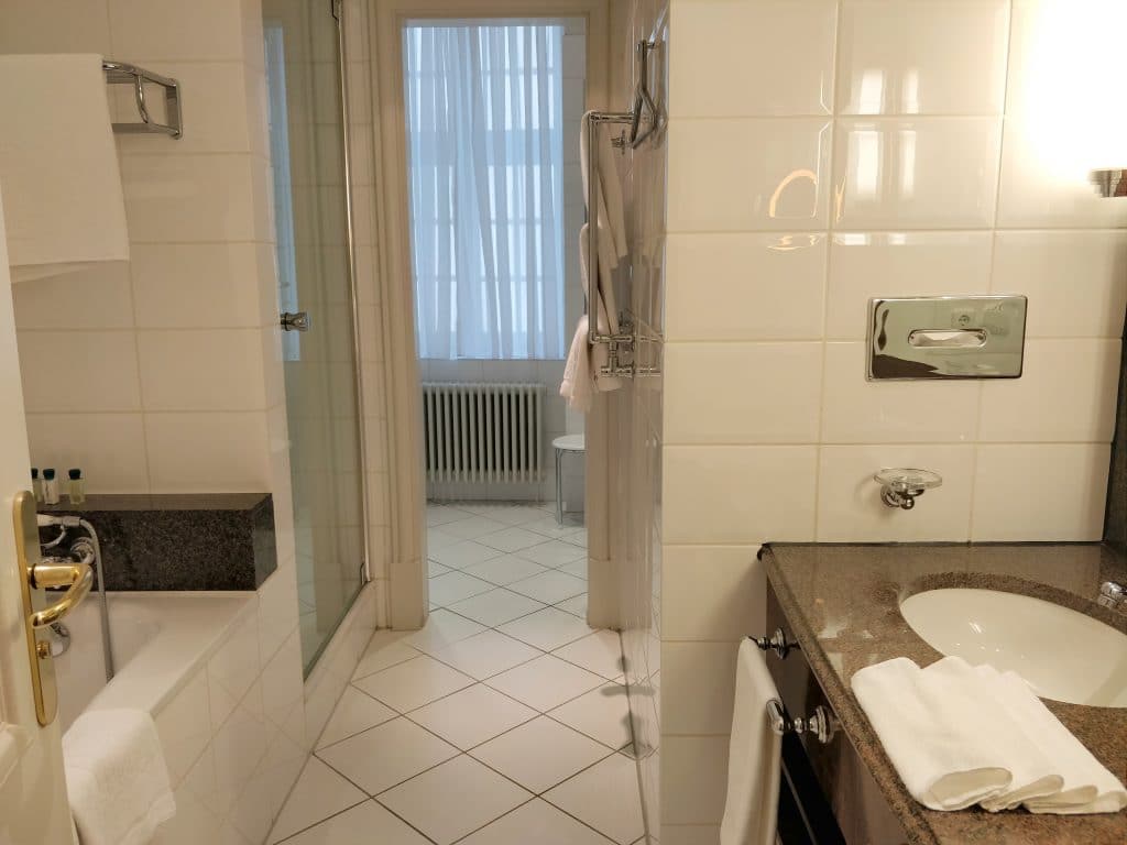 Überraschend hell ist dafür allerdings das Badezimmer, das mit einem eigenen Fenster daherkommt, von dem man sogar ebenfalls einen netten Blick hat. Zu finden ist das Fenster am Ende des Bades in dem gesondert abgetrennten Bereich für die Toilette und das Bidet. Das davor gelegene und langgezogene Badezimmer hat bei mir ebenfalls einen positiven Eindruck hinterlassen.