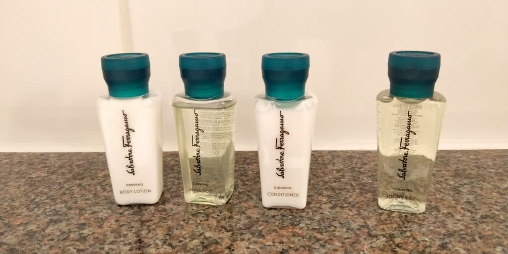Auch eine gesonderte Dusche gibt es, wenngleich mich hier der Duschkopf leider nicht recht zu überzeugen wusste. Die Pflegeprodukte sind dafür von höchster Qualität.
