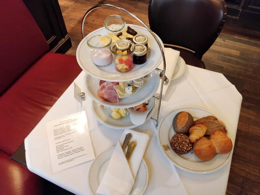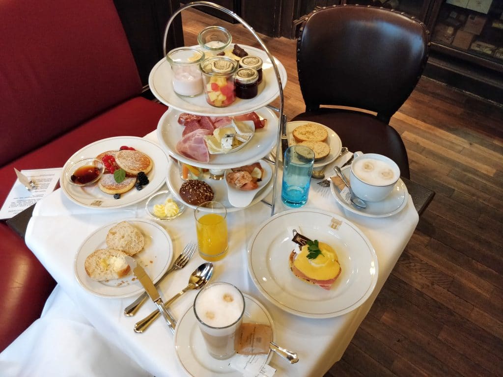 Man erhält auf Wunsch entweder eine vegane, vegetarische oder eine “normale” Variante mit je einer großen Etagere pro Person sowie Eierspeisen nach Wunsch, frischem Saft und Kaffeespezialitäten.