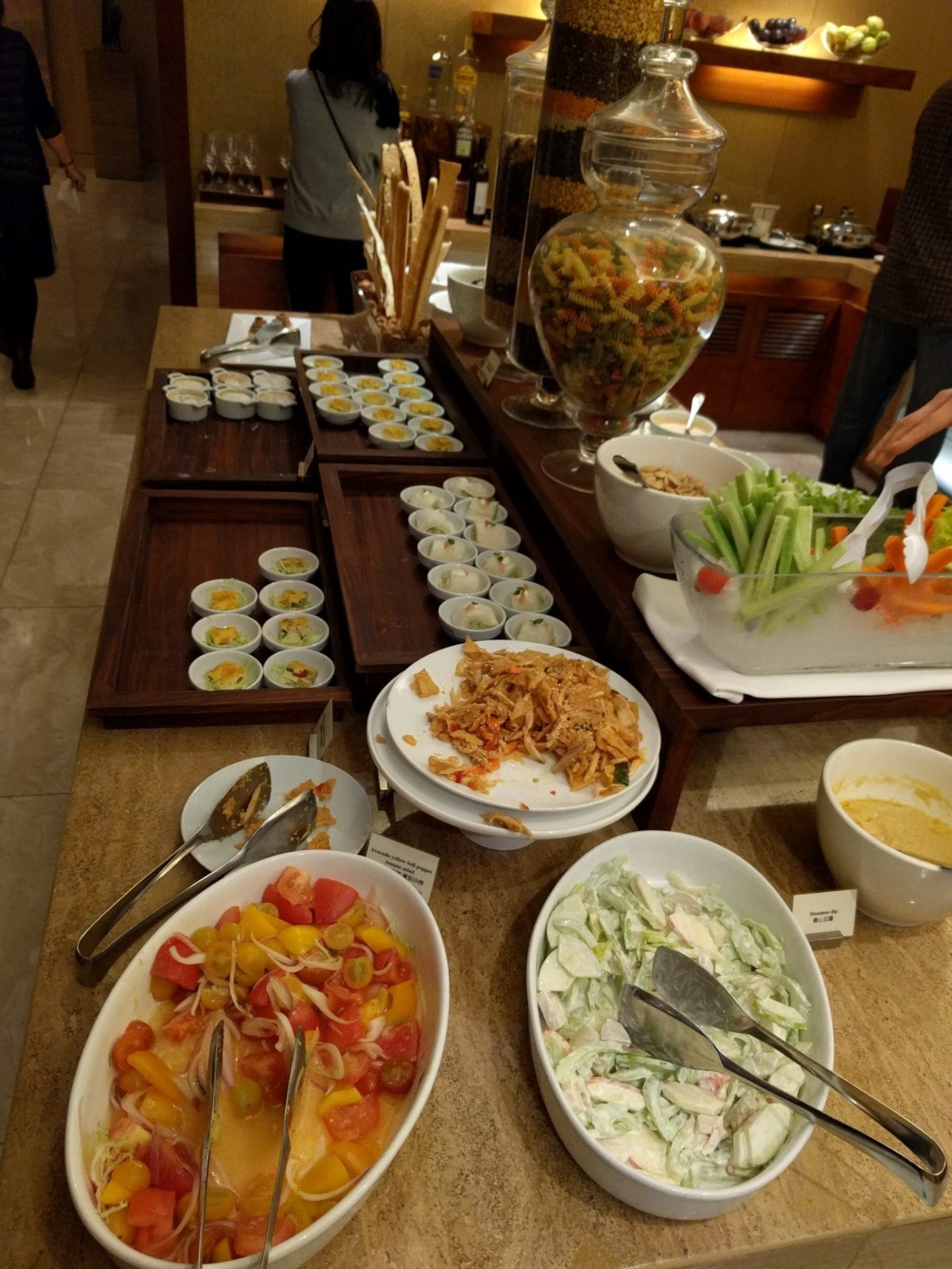 Angeboten wird ein Frühstück und eine Evening Cocktail Hour. Auch warme Optionen sind mit dabei, die Auswahl ist natürlich im Gegensatz zum Restaurant deutlich eingeschränkter. Insgesamt ist das Essen in Ordnung, man liegt hier aber im Gegensatz zum Restaurant eher im 4-Sterne Durchschnitt in Asien. Die Auswahl an alkoholischen Getränken während der Cocktail Hour empfand ich leider als etwas ernüchternd.