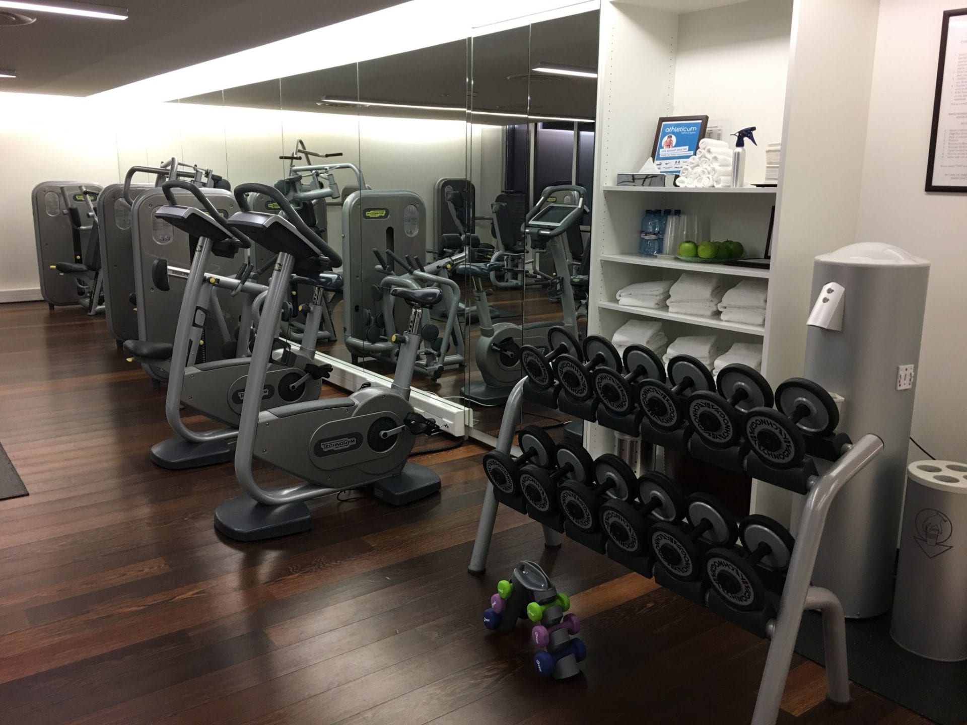 Der Fitnessbereich im InterContinental Genf ist wiederum recht gelungen und konnte mich vor allem durch moderne Geräte überzeugen. Frische Handtücher, Äpfel und Wasser standen allzeit bereit, die Anzahl der Geräte war den Gästen entsprechend vollkommen ausreichend.