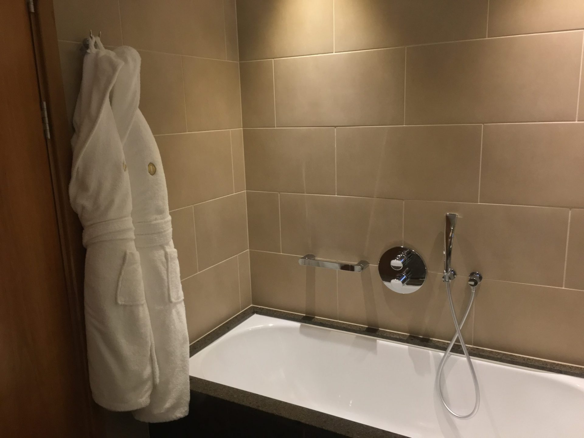 Das Badezimmer überzeugt ebenfalls auf ganzer Länge. Neben einer großen Badewanne bietet es eine sehr gute Dusche mit angenehmem Wasserdruck und viel Platz. Auch das große Waschbecken ist angenehm.