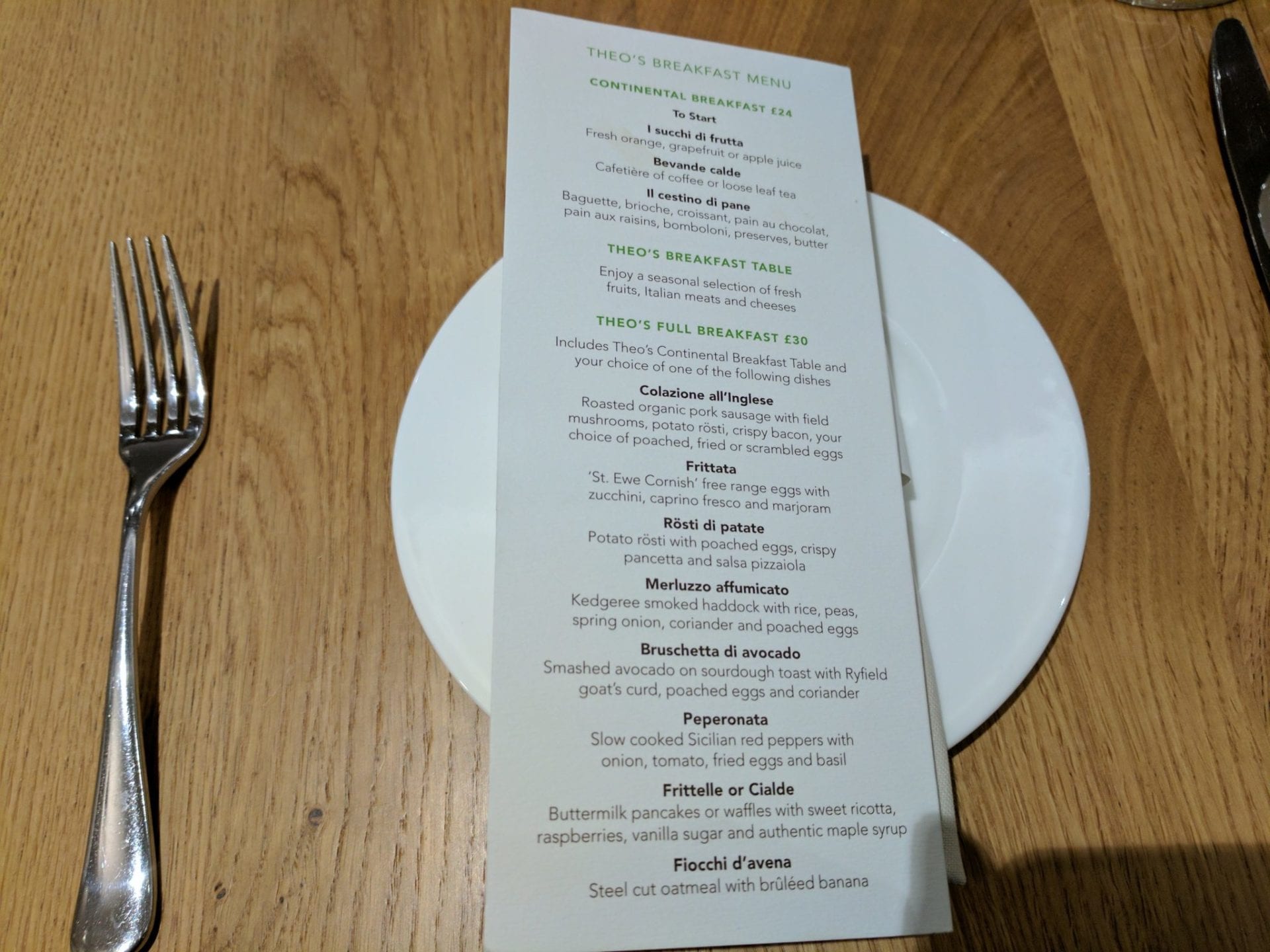 Das Frühstück wird im hoteleigenen Restaurant “Theo Randall” angeboten. Ich entschied mich für das Full Breakfast, welches neben dem kontinentalen Angebot auch Früchte, Aufschnitt und ein warmes Gericht nach Wahl beinhalten sollte. Weiterhin gibt es noch ein kleines Büffet, was mich allerdings eher enttäuschte.