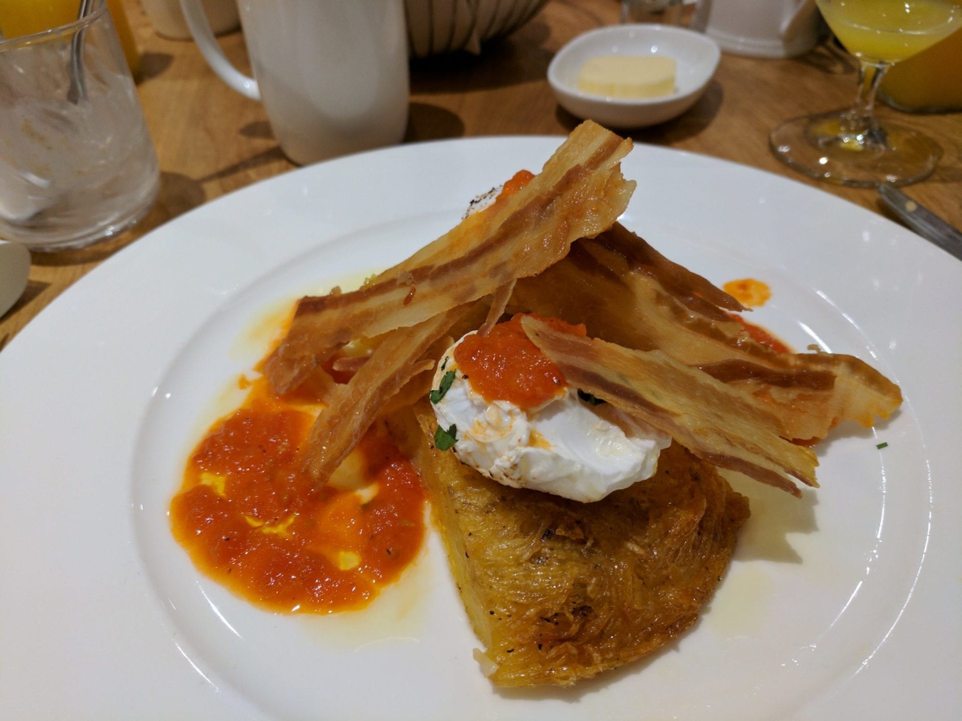 Unter den Bestelloptionen entschied ich mich für die poachierten Eier auf Rösti. Geschmacklich wirklich sehr lecker, ich persönlich hätte mir jedoch einfach Eggs Benedict zum Frühstück gewüscht. Zweifelsohne sind die Speisen hier aber qualitativ auf einem hohen Niveau.