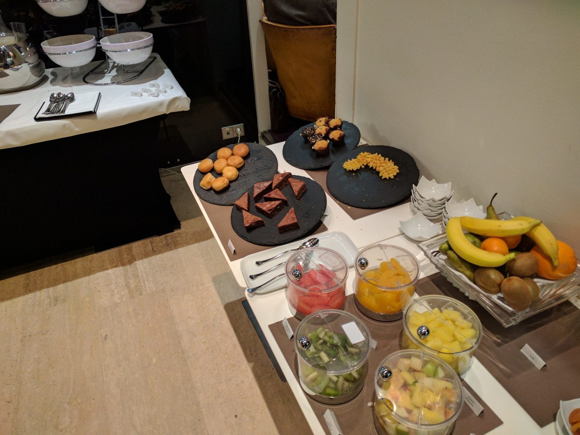 Das Frühstück im InterContinental Paris Avenue Marceau wird in der Bar neben der Lobby serviert. Dabei handelt es sich um ein typisch französisches Unterfangen, der Service ist dann doch anders als man es in großen Hotelrestaurants gewohnt ist und auch viele Gäste von außerhalb nehmen hier ein Frühstück ein. Neben den Speisen vom Büffet werden auch Eierspeisen am Platz serviert, bemerkenswerterweise auch Crêpes oder Pfannkuchen. Kaffeespezialitäten werden frisch von einem Barista zubereitet. Generell überzeugt das Angebot mit außergewöhnlich hoher Qualität. Statt Dutzend verschiedener Brot-, Marmeladen und Joghurtsorten beschränkt man sich hier auf das Wesentliche (was nicht zuletzt wohl auch dem beschränktem Platz geschuldet ist).