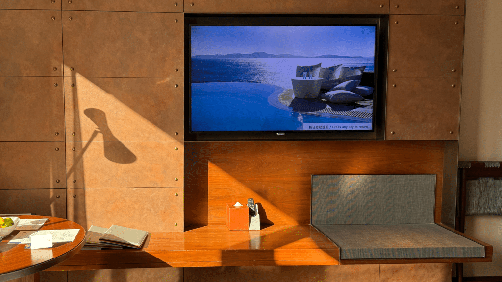 Immerhin gibt es aber auch im eigentlichen Zimmer, das ich für chinesische Verhältnisse als eher klein einschätzen würde, noch einmal eine Ablagemöglichkeit für Koffer. Auf den ersten Blick hat mir das Zimmer dabei grundlegend auch ganz gut gefallen.
