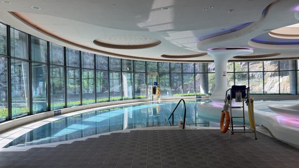 Daneben gilt natürlich wie immer in China, dass man nur mit einer Badekappe schwimmen kann, was für den einen oder anderen sicherlich auch abschreckend sein mag.