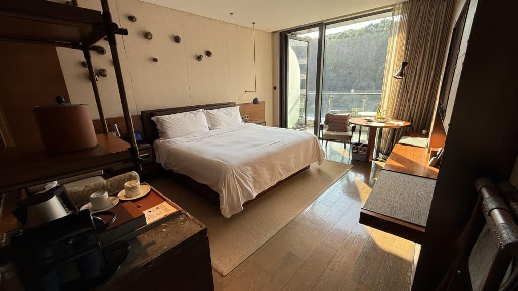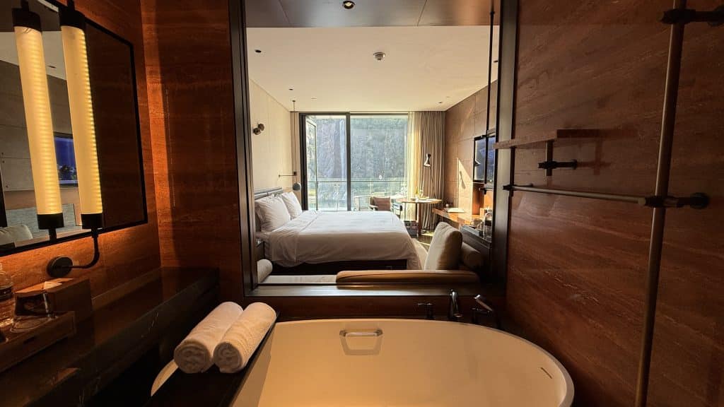 Daneben gibt es auch noch ausgewählte Suiten, die allesamt Zugang zum Club bieten und teilweise einen Blick auf den Wasserfall und dein Steinbruch sowie teilweise einen Unterwasserblick bieten. Ich konnte bei meinem Aufenthalt ein „normales“ Zimmer mit mittlerem Ausblick testen.
