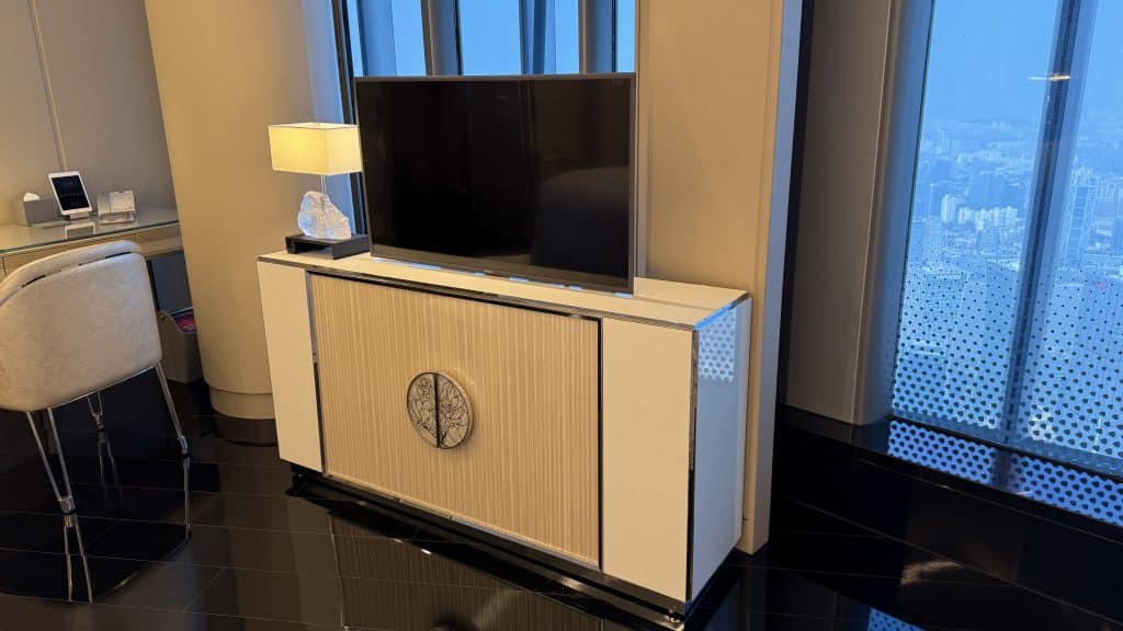 Was das Zimmer insgesamt angeht, bin ich bei meinem J Hotel Shanghai Tower Test ein wenig unentschlossen. Fraglos ist das Design sehr modern und besonders, man merkt auch die hochwertigen verwendeten Materialien und genießt natürlich einen tollen Blick. Dennoch finde ich nicht alle Details gelungen und finde das Zimmer zudem durch das sehr viele Glas und viele Chrom etwas zu steril und nicht enorm gemütlich – auch das ist aber sicherlich Geschmackssache.
