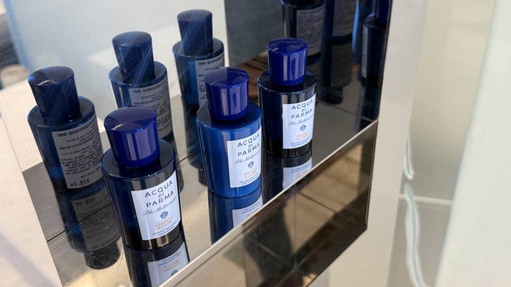 Von hoher Qualität sind derweil die bereitgestellten Pflegeprodukte von der italienischen Luxusmarke Aqua di Parma, die ich etwa auch von meiner The Chedi Andermatt Bewertung kenne.