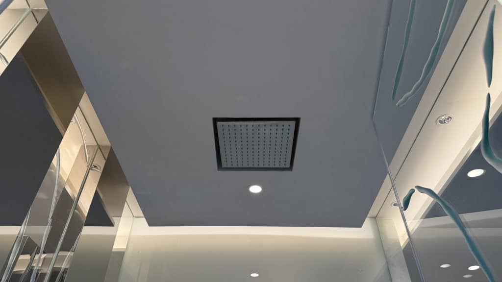 Diese bietet sowohl einen regulären als auch einen Regenduschkopf, wobei bei letzterer der Wasserdruck zu wünschen übrig lässt.